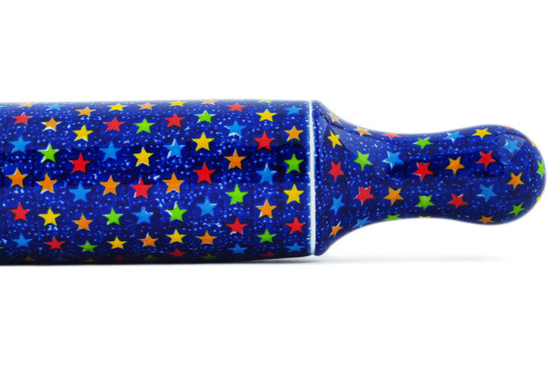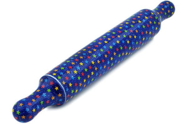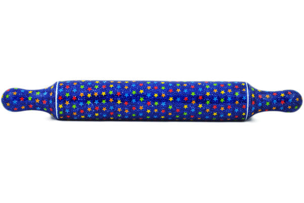 This Colorful Star Show 18" Rolling Pin was handmade and hand decorated in Boleslawiec, Poland by skilled artisans according to old traditional methods. This is a Polish pottery Signature Unikat, which means that it has been hand painted with both sponges and brushes and it is signed by the artist who painted it. Unikat pieces are the most intricate works of art. Larger Unikat items take hours of very careful work to finish. This Polish stoneware is microwave, dishwasher, freezer, and oven safe up to 480°F. It does not contain lead or cadmium. It is part of the Colorful Star Show Collection.