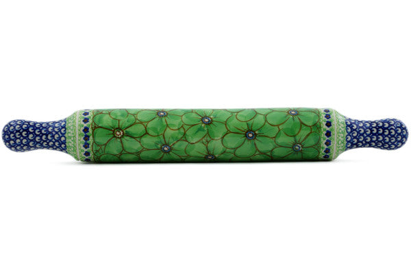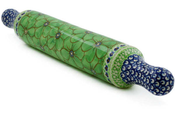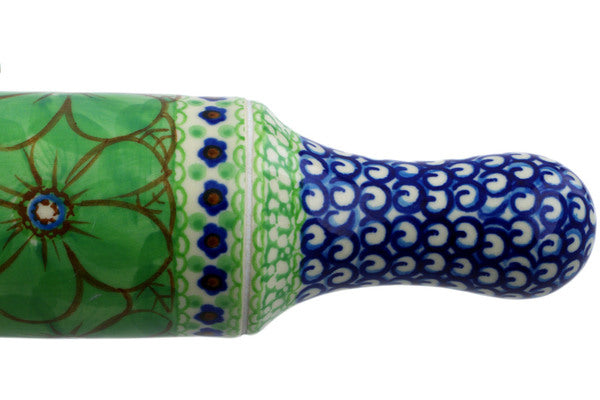 This Key Lime Dreams 18" Rolling Pin was handmade and hand decorated in Boleslawiec, Poland by skilled artisans according to old traditional methods. This is a Polish pottery Signature Unikat, which means that it has been hand painted with both sponges and brushes and it is signed by the artist who painted it. Unikat pieces are the most intricate works of art. Larger Unikat items take hours of very careful work to finish. This Polish stoneware is microwave, dishwasher, freezer, and oven safe up to 480°F. It does not contain lead or cadmium. It is part of the Key Lime Dreams Collection.