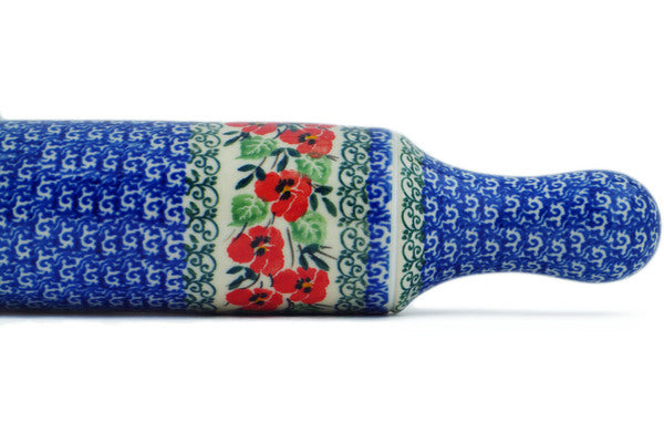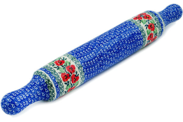 This Red Pansy 18" Rolling Pin was handmade and hand decorated in Boleslawiec, Poland by skilled artisans according to old traditional methods. This Polish stoneware is microwave, dishwasher, freezer, and oven safe up to 480°F. It does not contain lead or cadmium. It is part of the Red Pansy Collection.