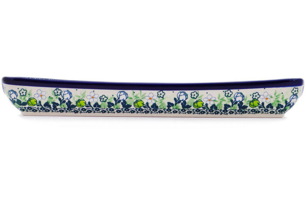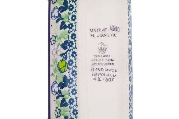This Good Luck Pansy 13" Rolling Pin Cradle was handmade and hand decorated in Boleslawiec, Poland by skilled artisans according to old traditional methods. This is a Polish pottery Signature Unikat, which means that it has been hand painted with both sponges and brushes and it is signed by the artist who painted it. Unikat pieces are the most intricate works of art. Larger Unikat items take hours of very careful work to finish. This Polish stoneware is microwave, dishwasher, freezer, and oven safe up to 480°F. It does not contain lead or cadmium. It is part of the Good Luck Pansy Collection.