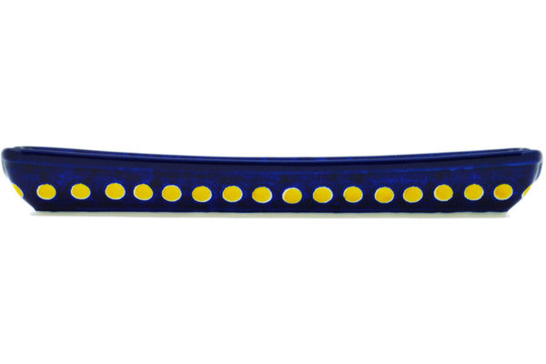 This Yellow Dots 13" Rolling Pin Cradle was handmade and hand decorated in Boleslawiec, Poland by skilled artisans according to old traditional methods. This Polish stoneware is microwave, dishwasher, freezer, and oven safe up to 480°F. It does not contain lead or cadmium. It is part of the Yellow Dots Collection.