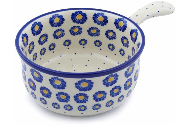 This Blue Zinnia 10" Round Baker with Handles was handmade and hand decorated in Boleslawiec, Poland by skilled artisans according to old traditional methods. This Polish stoneware is microwave, dishwasher, freezer, and oven safe up to 480°F. It does not contain lead or cadmium. It is part of the Blue Zinnia Collection.
