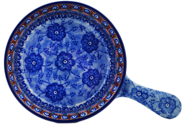 This Dancing Blue Poppies 10" Round Baker with Handles was handmade and hand decorated in Boleslawiec, Poland by skilled artisans according to old traditional methods. This is a Polish pottery Signature Unikat, which means that it has been hand painted with both sponges and brushes and it is signed by the artist who painted it. Unikat pieces are the most intricate works of art. Larger Unikat items take hours of very careful work to finish. This Polish stoneware is microwave, dishwasher, freezer, and oven safe up to 480°F. It does not contain lead or cadmium. It is part of the Dancing Blue Poppies Collection.