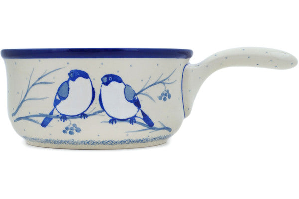 This Waiting Birds 10" Round Baker with Handles was handmade and hand decorated in Boleslawiec, Poland by skilled artisans according to old traditional methods. This is a Polish pottery Signature Unikat, which means that it has been hand painted with both sponges and brushes and it is signed by the artist who painted it. Unikat pieces are the most intricate works of art. Larger Unikat items take hours of very careful work to finish. This Polish stoneware is microwave, dishwasher, freezer, and oven safe up to 480°F. It does not contain lead or cadmium. It is part of the Waiting Birds Collection.