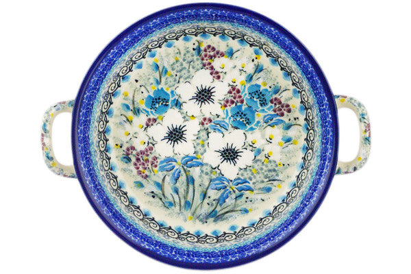 This Solstice Bloom 6½-inch Round Baker with Handles was handmade and hand decorated in Boleslawiec, Poland by skilled artisans according to old traditional methods. This is a Polish pottery Signature Unikat, which means that it has been hand painted with both sponges and brushes and it is signed by the artist who painted it. Unikat pieces are the most intricate works of art. Larger Unikat items take hours of very careful work to finish. This Polish stoneware is microwave, dishwasher, freezer, and oven safe up to 480°F. It does not contain lead or cadmium. It is part of the Solstice Bloom Collection.