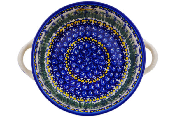 This Garden Whispers 8" Round Baker with Handles was handmade and hand decorated in Boleslawiec, Poland by skilled artisans according to old traditional methods. This is a Polish pottery Signature Unikat, which means that it has been hand painted with both sponges and brushes and it is signed by the artist who painted it. Unikat pieces are the most intricate works of art. Larger Unikat items take hours of very careful work to finish. This Polish stoneware is microwave, dishwasher, freezer, and oven safe up to 480°F. It does not contain lead or cadmium. It is part of the Garden Whispers Collection.