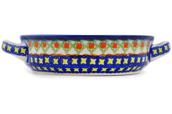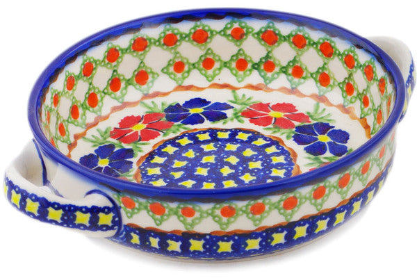 This Paradise Poppy 8" Round Baker with Handles was handmade and hand decorated in Boleslawiec, Poland by skilled artisans according to old traditional methods. This Polish stoneware is microwave, dishwasher, freezer, and oven safe up to 480°F. It does not contain lead or cadmium. It is part of the Paradise Poppy Collection.
