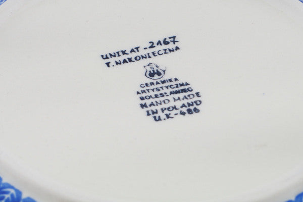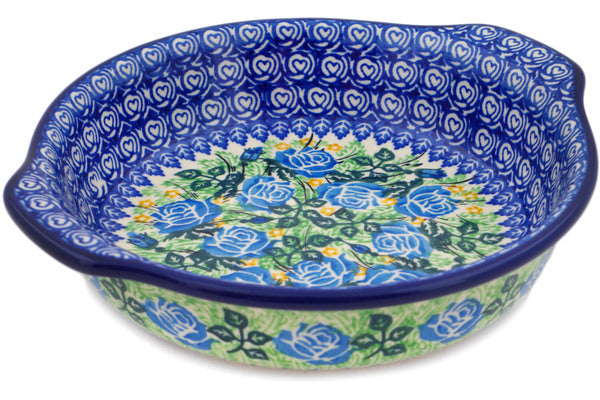 This English Rose 9" Round Baker with Handles was handmade and hand decorated in Boleslawiec, Poland by skilled artisans according to old traditional methods. This is a Polish pottery Signature Unikat, which means that it has been hand painted with both sponges and brushes and it is signed by the artist who painted it. Unikat pieces are the most intricate works of art. Larger Unikat items take hours of very careful work to finish. This Polish stoneware is microwave, dishwasher, freezer, and oven safe up to 480°F. It does not contain lead or cadmium. It is part of the English Rose Collection.