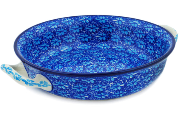 This Deep Into The Blue Sea Medium Round Baker with Handles was handmade and hand decorated in Boleslawiec, Poland by skilled artisans according to old traditional methods. This Polish stoneware is microwave, dishwasher, freezer, and oven safe up to 480°F. It does not contain lead or cadmium. It is part of the Deep Into The Blue Sea Collection.