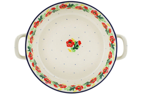 This Red Poppy Chain Medium Round Baker with Handles was handmade and hand decorated in Boleslawiec, Poland by skilled artisans according to old traditional methods. This Polish stoneware is microwave, dishwasher, freezer, and oven safe up to 480°F. It does not contain lead or cadmium. It is part of the Red Poppy Chain Collection.