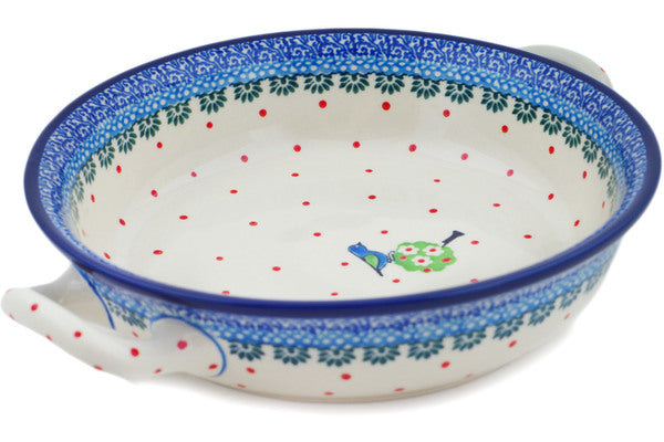 This Tree Bird Medium Round Baker with Handles was handmade and hand decorated in Boleslawiec, Poland by skilled artisans according to old traditional methods. This Polish stoneware is microwave, dishwasher, freezer, and oven safe up to 480°F. It does not contain lead or cadmium. It is part of the Tree Bird Collection.