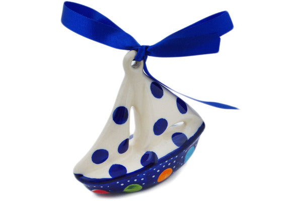 This Lights In The Sky 3" Sailboat Ornament was handmade and hand decorated in Boleslawiec, Poland by skilled artisans according to old traditional methods. This Polish stoneware is microwave, dishwasher, freezer, and oven safe up to 480°F. It does not contain lead or cadmium. It is part of the Lights In The Sky Collection.