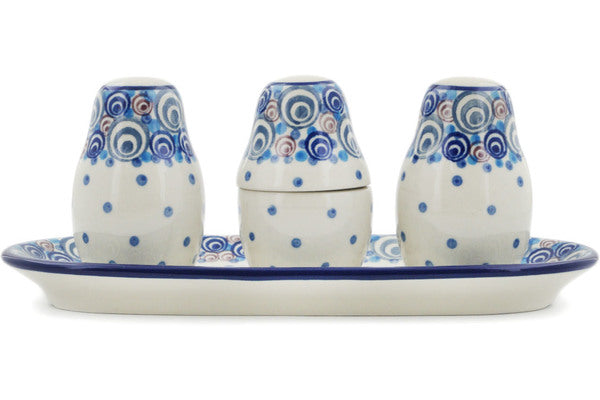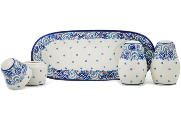 This Bubble Fun 10" Salt and Pepper with Toothpick Holder was handmade and hand decorated in Boleslawiec, Poland by skilled artisans according to old traditional methods. This Polish stoneware is microwave, dishwasher, freezer, and oven safe up to 480°F. It does not contain lead or cadmium. It is part of the Bubble Fun Collection.