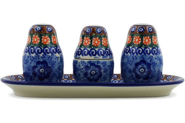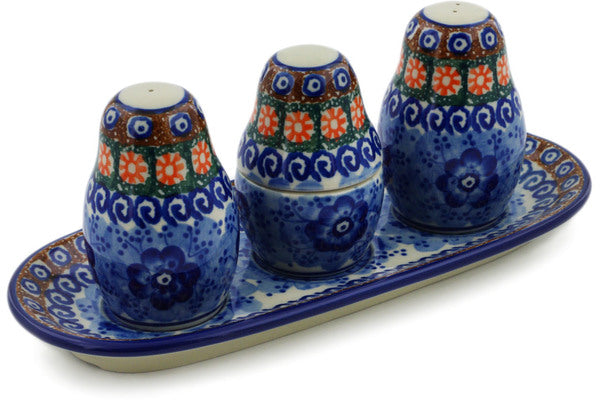 Salt and Pepper with Toothpick Holder 10" Dancing Blue Poppies Theme UNIKAT