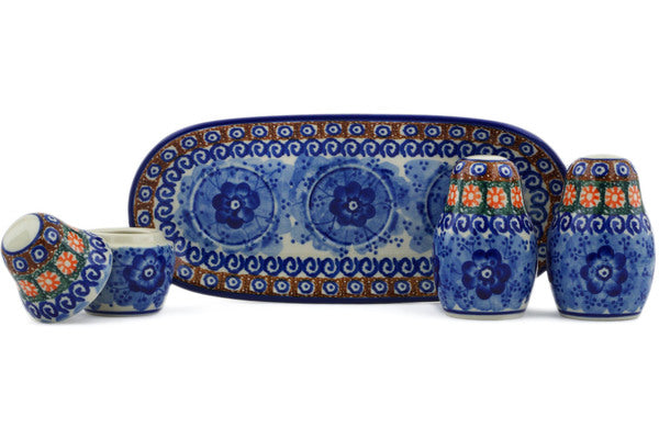 This Dancing Blue Poppies 10" Salt and Pepper with Toothpick Holder was handmade and hand decorated in Boleslawiec, Poland by skilled artisans according to old traditional methods. This is a Polish pottery Signature Unikat, which means that it has been hand painted with both sponges and brushes and it is signed by the artist who painted it. Unikat pieces are the most intricate works of art. Larger Unikat items take hours of very careful work to finish. This Polish stoneware is microwave, dishwasher, freezer, and oven safe up to 480°F. It does not contain lead or cadmium. It is part of the Dancing Blue Poppies Collection.