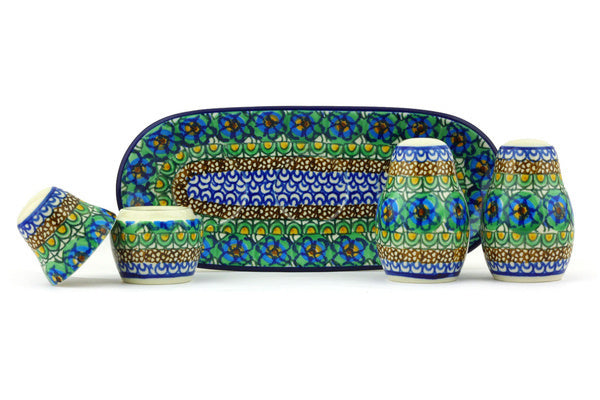 This Mardi Gras 10" Salt and Pepper with Toothpick Holder was handmade and hand decorated in Boleslawiec, Poland by skilled artisans according to old traditional methods. This is a Polish pottery Signature Unikat, which means that it has been hand painted with both sponges and brushes and it is signed by the artist who painted it. Unikat pieces are the most intricate works of art. Larger Unikat items take hours of very careful work to finish. This Polish stoneware is microwave, dishwasher, freezer, and oven safe up to 480°F. It does not contain lead or cadmium. It is part of the Mardi Gras Collection.