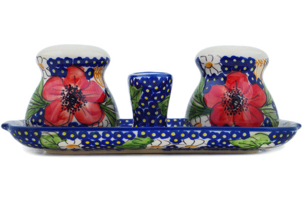 Salt and Pepper with Toothpick Holder 8" Vivid Garden Theme UNIKAT
