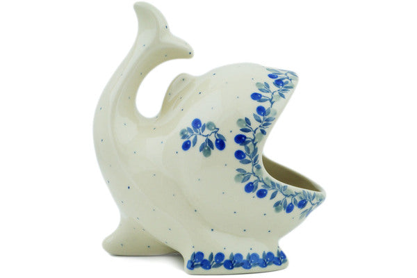 This Horse Gallop 6" Salt Cellar, Salt Pig, Sponge Holder, Whale was handmade and hand decorated in Boleslawiec, Poland by skilled artisans according to old traditional methods. This Polish stoneware is microwave, dishwasher, freezer, and oven safe up to 480°F. It does not contain lead or cadmium. It is part of the Horse Gallop Collection.