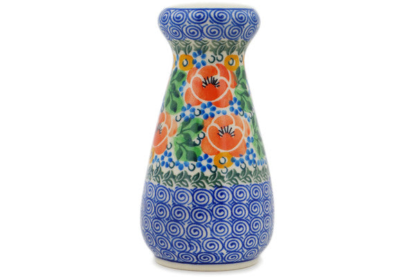 This Red Poppy Burst 6" Salt Shaker was handmade and hand decorated in Boleslawiec, Poland by skilled artisans according to old traditional methods. This is a Polish pottery Signature Unikat, which means that it has been hand painted with both sponges and brushes and it is signed by the artist who painted it. Unikat pieces are the most intricate works of art. Larger Unikat items take hours of very careful work to finish. This Polish stoneware is microwave, dishwasher, freezer, and oven safe up to 480°F. It does not contain lead or cadmium. It is part of the Red Poppy Burst Collection.