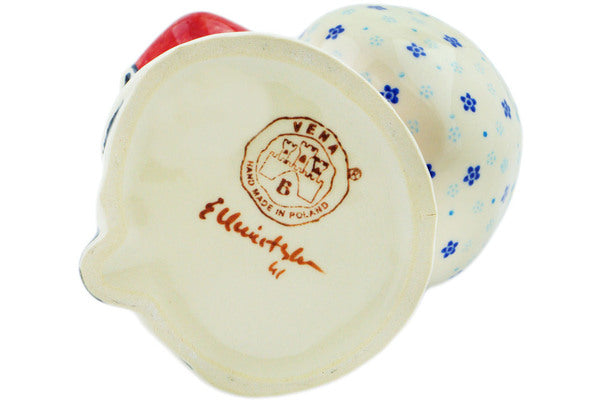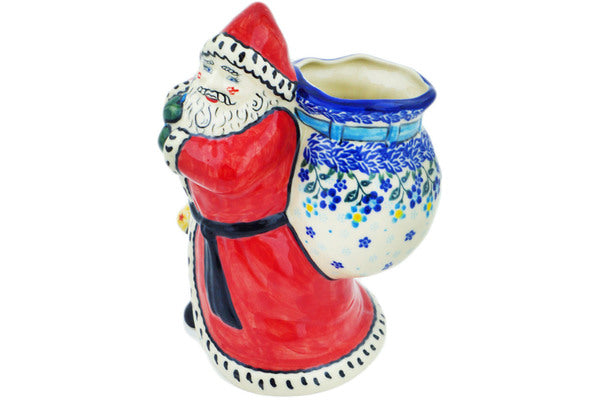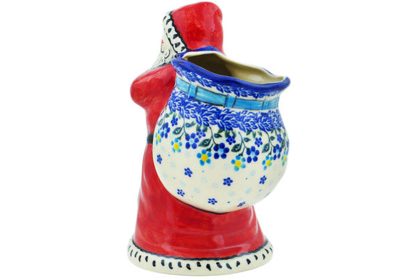 This Bluems 9" Santa Shaped Jar was handmade and hand decorated in Boleslawiec, Poland by skilled artisans according to old traditional methods. This Polish stoneware is microwave, dishwasher, freezer, and oven safe up to 480°F. It does not contain lead or cadmium. It is part of the Bluems Collection.