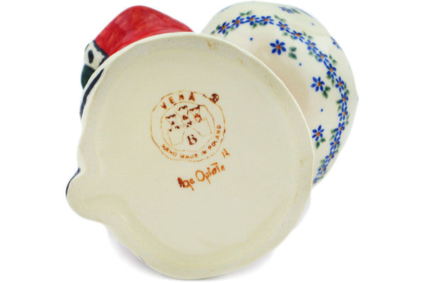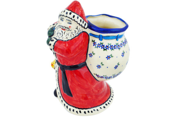 This Florets 9" Santa Shaped Jar was handmade and hand decorated in Boleslawiec, Poland by skilled artisans according to old traditional methods. This Polish stoneware is microwave, dishwasher, freezer, and oven safe up to 480°F. It does not contain lead or cadmium. It is part of the Florets Collection.