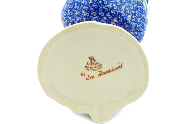 This Simply Blue 9" Santa Shaped Jar was handmade and hand decorated in Boleslawiec, Poland by skilled artisans according to old traditional methods. This is a Polish pottery Signature Unikat, which means that it has been hand painted with both sponges and brushes and it is signed by the artist who painted it. Unikat pieces are the most intricate works of art. Larger Unikat items take hours of very careful work to finish. This Polish stoneware is microwave, dishwasher, freezer, and oven safe up to 480°F. It does not contain lead or cadmium. It is part of the Simply Blue Collection.