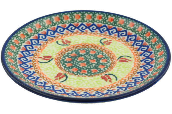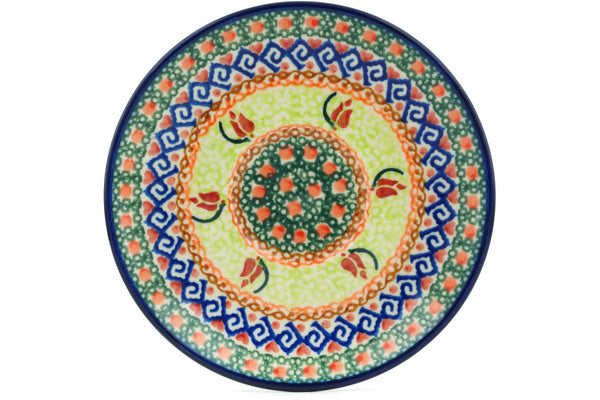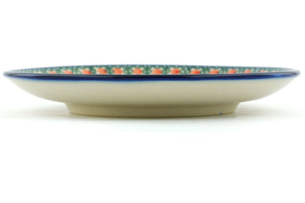This Ring Of Roses 5" Saucer was handmade and hand decorated in Boleslawiec, Poland by skilled artisans according to old traditional methods. This Polish stoneware is microwave, dishwasher, freezer, and oven safe up to 480°F. It does not contain lead or cadmium. It is part of the Ring Of Roses Collection.