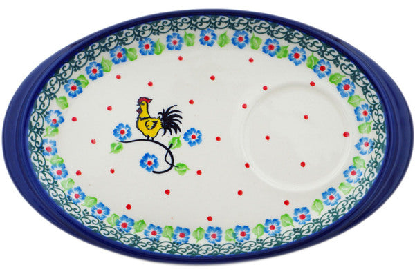 This Moring Greeting 9" Saucer was handmade and hand decorated in Boleslawiec, Poland by skilled artisans according to old traditional methods. This Polish stoneware is microwave, dishwasher, freezer, and oven safe up to 480°F. It does not contain lead or cadmium. It is part of the Moring Greeting Collection.