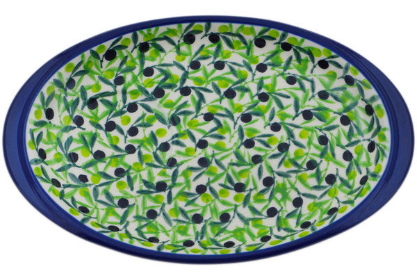 This Olive Grove 9" Saucer was handmade and hand decorated in Boleslawiec, Poland by skilled artisans according to old traditional methods. This is a Polish pottery Signature Unikat, which means that it has been hand painted with both sponges and brushes and it is signed by the artist who painted it. Unikat pieces are the most intricate works of art. Larger Unikat items take hours of very careful work to finish. This Polish stoneware is microwave, dishwasher, freezer, and oven safe up to 480°F. It does not contain lead or cadmium. It is part of the Olive Grove Collection.