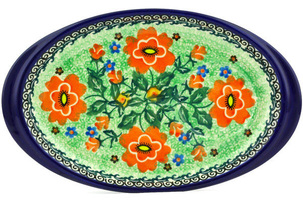 This Red Poppies 9" Saucer was handmade and hand decorated in Boleslawiec, Poland by skilled artisans according to old traditional methods. This is a Polish pottery Signature Unikat, which means that it has been hand painted with both sponges and brushes and it is signed by the artist who painted it. Unikat pieces are the most intricate works of art. Larger Unikat items take hours of very careful work to finish. This Polish stoneware is microwave, dishwasher, freezer, and oven safe up to 480°F. It does not contain lead or cadmium. It is part of the Red Poppies Collection.