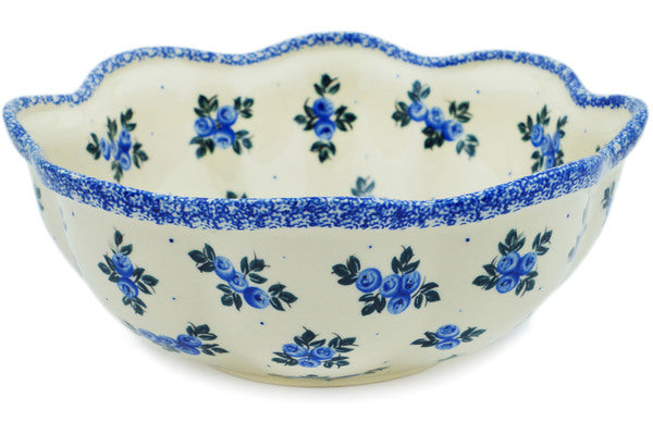This Blue Berry Special 10" Scalloped Bowl was handmade and hand decorated in Boleslawiec, Poland by skilled artisans according to old traditional methods. This is a Polish pottery Signature Unikat, which means that it has been hand painted with both sponges and brushes and it is signed by the artist who painted it. Unikat pieces are the most intricate works of art. Larger Unikat items take hours of very careful work to finish. This Polish stoneware is microwave, dishwasher, freezer, and oven safe up to 480°F. It does not contain lead or cadmium. It is part of the Blue Berry Special Collection.