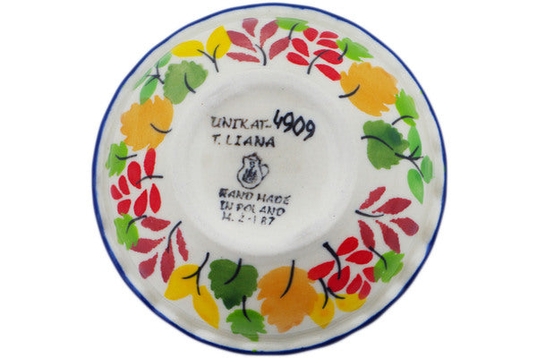 This Falling For You 3" Scalloped Bowl was handmade and hand decorated in Boleslawiec, Poland by skilled artisans according to old traditional methods. This is a Polish pottery Signature Unikat, which means that it has been hand painted with both sponges and brushes and it is signed by the artist who painted it. Unikat pieces are the most intricate works of art. Larger Unikat items take hours of very careful work to finish. This Polish stoneware is microwave, dishwasher, freezer, and oven safe up to 480°F. It does not contain lead or cadmium. It is part of the Falling For You Collection.