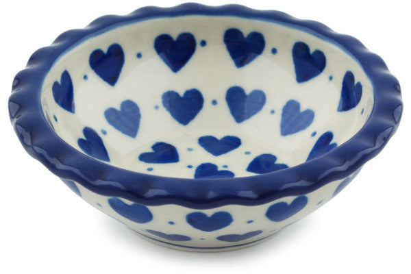 This Hearts Delight 3" Scalloped Bowl was handmade and hand decorated in Boleslawiec, Poland by skilled artisans according to old traditional methods. This Polish stoneware is microwave, dishwasher, freezer, and oven safe up to 480°F. It does not contain lead or cadmium. It is part of the Hearts Delight Collection.