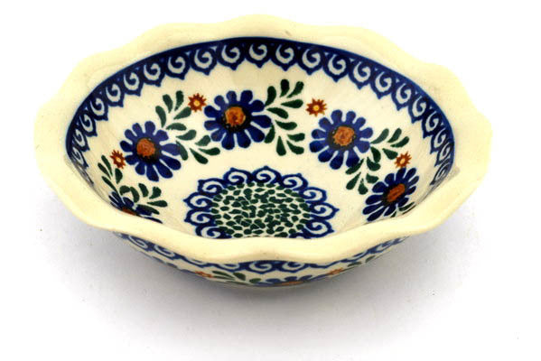 This Blue Daisy Meadow 6" Scalloped Bowl was handmade and hand decorated in Boleslawiec, Poland by skilled artisans according to old traditional methods. This Polish stoneware is microwave, dishwasher, freezer, and oven safe up to 480°F. It does not contain lead or cadmium. It is part of the Blue Daisy Meadow Collection.