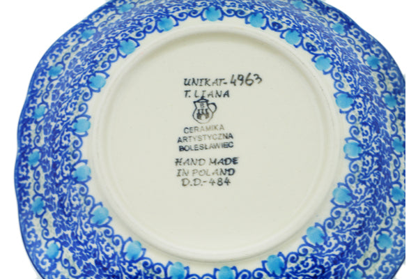This Blue Wildflower Meadow 7" Scalloped Bowl was handmade and hand decorated in Boleslawiec, Poland by skilled artisans according to old traditional methods. This is a Polish pottery Signature Unikat, which means that it has been hand painted with both sponges and brushes and it is signed by the artist who painted it. Unikat pieces are the most intricate works of art. Larger Unikat items take hours of very careful work to finish. This Polish stoneware is microwave, dishwasher, freezer, and oven safe up to 480°F. It does not contain lead or cadmium. It is part of the Blue Wildflower Meadow Collection.
