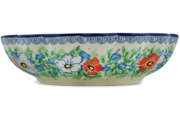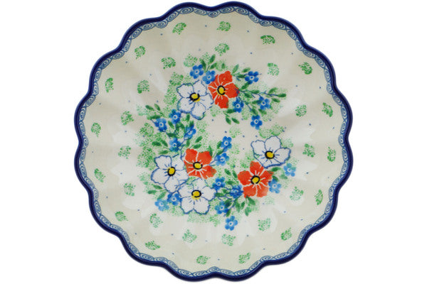 This Lovely Hibiscus 7" Scalloped Bowl was handmade and hand decorated in Boleslawiec, Poland by skilled artisans according to old traditional methods. This is a Polish pottery Signature Unikat, which means that it has been hand painted with both sponges and brushes and it is signed by the artist who painted it. Unikat pieces are the most intricate works of art. Larger Unikat items take hours of very careful work to finish. This Polish stoneware is microwave, dishwasher, freezer, and oven safe up to 480°F. It does not contain lead or cadmium. It is part of the Lovely Hibiscus Collection.