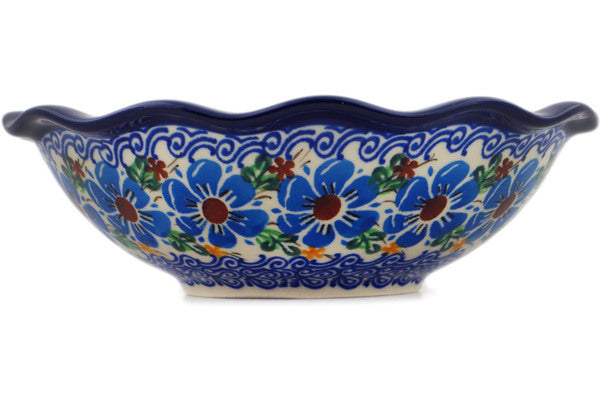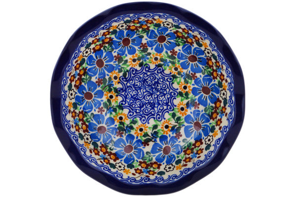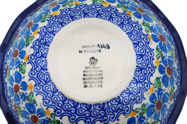 This Sea Of Posies 7" Scalloped Bowl was handmade and hand decorated in Boleslawiec, Poland by skilled artisans according to old traditional methods. This is a Polish pottery Signature Unikat, which means that it has been hand painted with both sponges and brushes and it is signed by the artist who painted it. Unikat pieces are the most intricate works of art. Larger Unikat items take hours of very careful work to finish. This Polish stoneware is microwave, dishwasher, freezer, and oven safe up to 480°F. It does not contain lead or cadmium. It is part of the Sea Of Posies Collection.