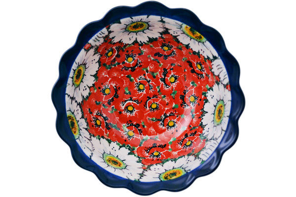 Scalloped Bowl 7" Sweet Red Petals Theme UNIKAT