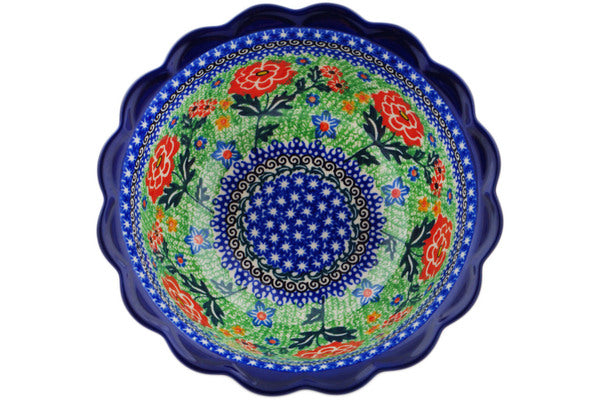 This Bold Carnation 8" Scalloped Bowl was handmade and hand decorated in Boleslawiec, Poland by skilled artisans according to old traditional methods. This is a Polish pottery Signature Unikat, which means that it has been hand painted with both sponges and brushes and it is signed by the artist who painted it. Unikat pieces are the most intricate works of art. Larger Unikat items take hours of very careful work to finish. This Polish stoneware is microwave, dishwasher, freezer, and oven safe up to 480°F. It does not contain lead or cadmium. It is part of the Bold Carnation Collection.