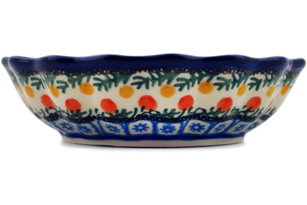This Winter Forest 5" Scalloped Fluted Bowl was handmade and hand decorated in Boleslawiec, Poland by skilled artisans according to old traditional methods. This is a Polish pottery Signature Unikat, which means that it has been hand painted with both sponges and brushes and it is signed by the artist who painted it. Unikat pieces are the most intricate works of art. Larger Unikat items take hours of very careful work to finish. This Polish stoneware is microwave, dishwasher, freezer, and oven safe up to 480°F. It does not contain lead or cadmium. It is part of the Winter Forest Collection.