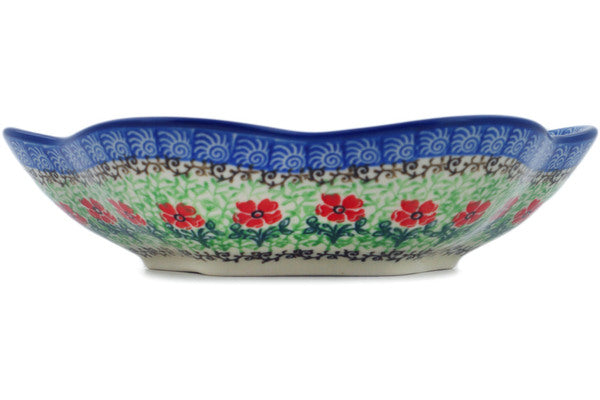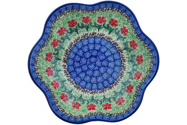 This Maraschino 8" Scalloped Fluted Bowl was handmade and hand decorated in Boleslawiec, Poland by skilled artisans according to old traditional methods. This Polish stoneware is microwave, dishwasher, freezer, and oven safe up to 480°F. It does not contain lead or cadmium. It is part of the Maraschino Collection.