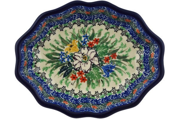 Serving Bowl 7" White Lily Meadow Theme UNIKAT