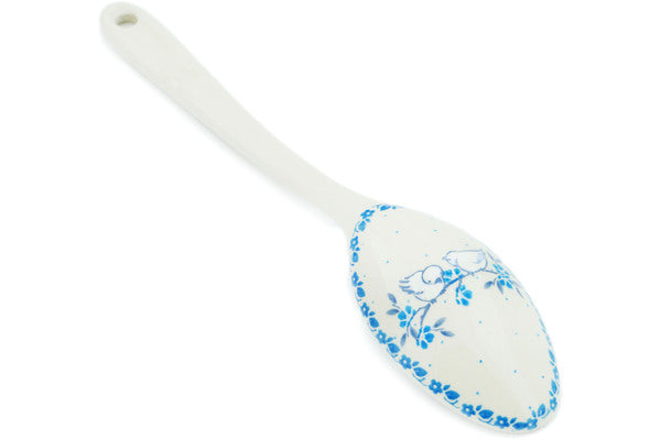 This Joyful Doves 13" Serving Spoon was handmade and hand decorated in Boleslawiec, Poland by skilled artisans according to old traditional methods. This Polish stoneware is microwave, dishwasher, freezer, and oven safe up to 480°F. It does not contain lead or cadmium. It is part of the Joyful Doves Collection.
