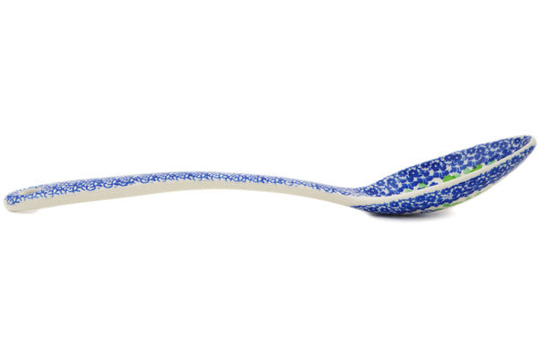 This Patio Views 13" Serving Spoon was handmade and hand decorated in Boleslawiec, Poland by skilled artisans according to old traditional methods. This is a Polish pottery Signature Unikat, which means that it has been hand painted with both sponges and brushes and it is signed by the artist who painted it. Unikat pieces are the most intricate works of art. Larger Unikat items take hours of very careful work to finish. This Polish stoneware is microwave, dishwasher, freezer, and oven safe up to 480°F. It does not contain lead or cadmium. It is part of the Patio Views Collection.
