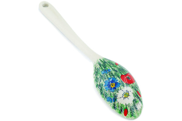 This Polish Fields 13" Serving Spoon was handmade and hand decorated in Boleslawiec, Poland by skilled artisans according to old traditional methods. This is a Polish pottery Signature Unikat, which means that it has been hand painted with both sponges and brushes and it is signed by the artist who painted it. Unikat pieces are the most intricate works of art. Larger Unikat items take hours of very careful work to finish. This Polish stoneware is microwave, dishwasher, freezer, and oven safe up to 480°F. It does not contain lead or cadmium. It is part of the Polish Fields Collection.