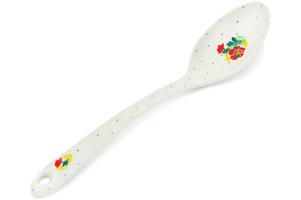 This Red Poppy Chain 13" Serving Spoon was handmade and hand decorated in Boleslawiec, Poland by skilled artisans according to old traditional methods. This Polish stoneware is microwave, dishwasher, freezer, and oven safe up to 480°F. It does not contain lead or cadmium. It is part of the Red Poppy Chain Collection.