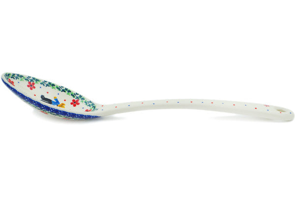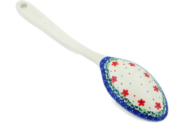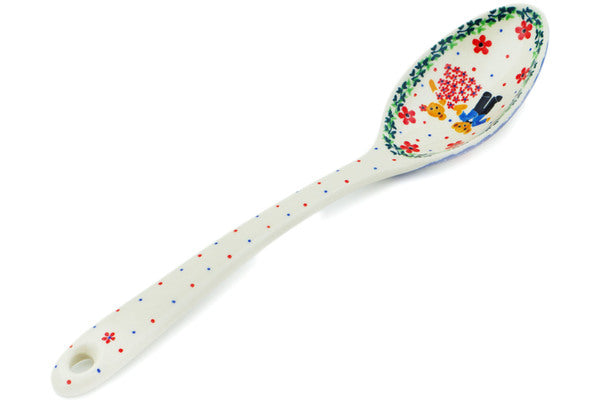 This Royal Teddy 13" Serving Spoon was handmade and hand decorated in Boleslawiec, Poland by skilled artisans according to old traditional methods. This is a Polish pottery Signature Unikat, which means that it has been hand painted with both sponges and brushes and it is signed by the artist who painted it. Unikat pieces are the most intricate works of art. Larger Unikat items take hours of very careful work to finish. This Polish stoneware is microwave, dishwasher, freezer, and oven safe up to 480°F. It does not contain lead or cadmium. It is part of the Royal Teddy Collection.