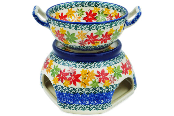 This Fall Vibes Set for Fondue was handmade and hand decorated in Boleslawiec, Poland by skilled artisans according to old traditional methods. This Polish stoneware is microwave, dishwasher, freezer, and oven safe up to 480°F. It does not contain lead or cadmium. It is part of the Fall Vibes Collection.