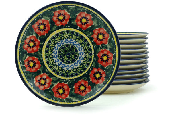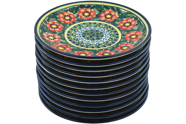 This Poppies All Around Set of 12 Plates was handmade and hand decorated in Boleslawiec, Poland by skilled artisans according to old traditional methods. This is a Polish pottery Signature Unikat, which means that it has been hand painted with both sponges and brushes and it is signed by the artist who painted it. Unikat pieces are the most intricate works of art. Larger Unikat items take hours of very careful work to finish. This Polish stoneware is microwave, dishwasher, freezer, and oven safe up to 480°F. It does not contain lead or cadmium. It is part of the Poppies All Around Collection.