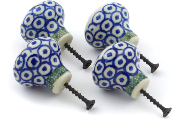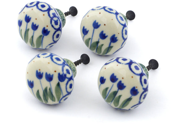 This Water Tulip Set of 4 Drawer Pull Knobs 1-1/2 inch was handmade and hand decorated in Boleslawiec, Poland by skilled artisans according to old traditional methods. This Polish stoneware is microwave, dishwasher, freezer, and oven safe up to 480°F. It does not contain lead or cadmium. It is part of the Water Tulip Collection.